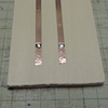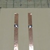(2) 銅テープについている裏紙をはがし、1〜1.5センチぐらいの間隔で2本貼ります。