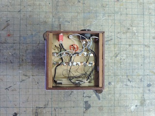 (14) ライト設置はこれで完成。これが最終的な配線の状態です。ライトのコードは銅テープにハンダ付けしています。
